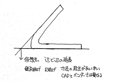 板金屋さんはR曲げになり、仮想点管理になるとの事。