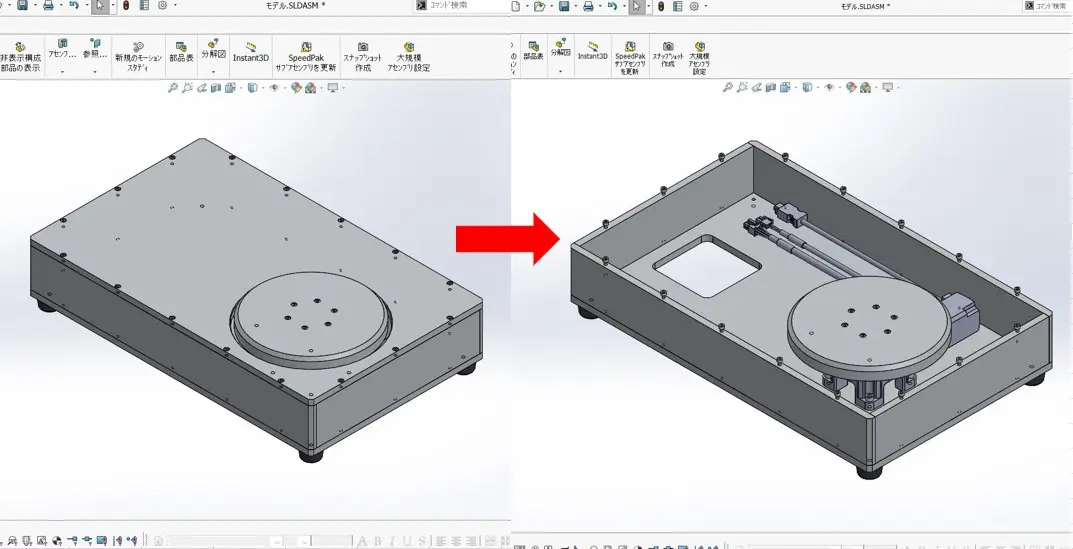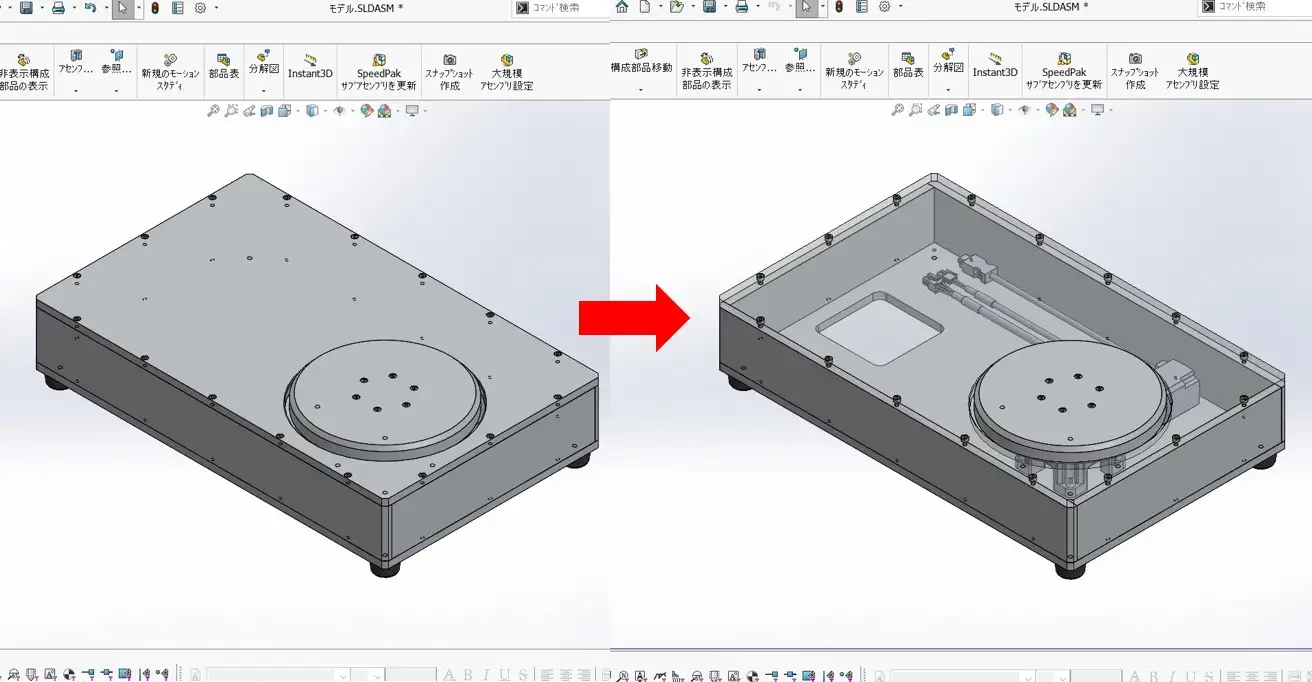 今回はSOLIDWORKSでよく使う機能「構成部品非表示」「透明度変更」「抑制」をご紹介します。
