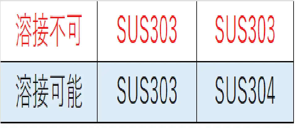 1.SUSの溶接は可能、但しSUS303同士は不可。