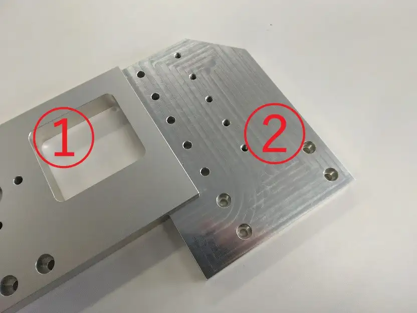 切削痕:この板は①の板厚から②の厚さへ段差のある加工している。