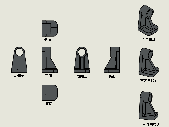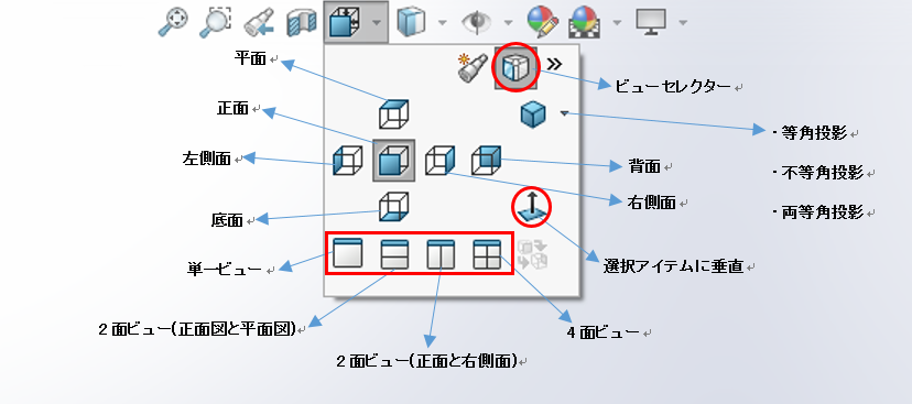 ◆「正面」「平面」「右側面」「左側面」「底面」「背面」「等角投影」「不等角投影」「両等角投影」