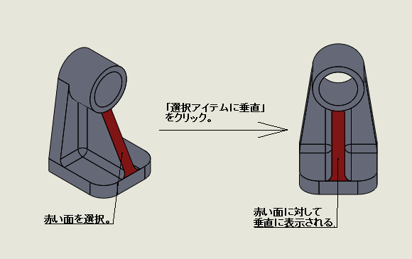 選択した面、平面、フィーチャーが操作者の視線に垂直となるように表示されます。