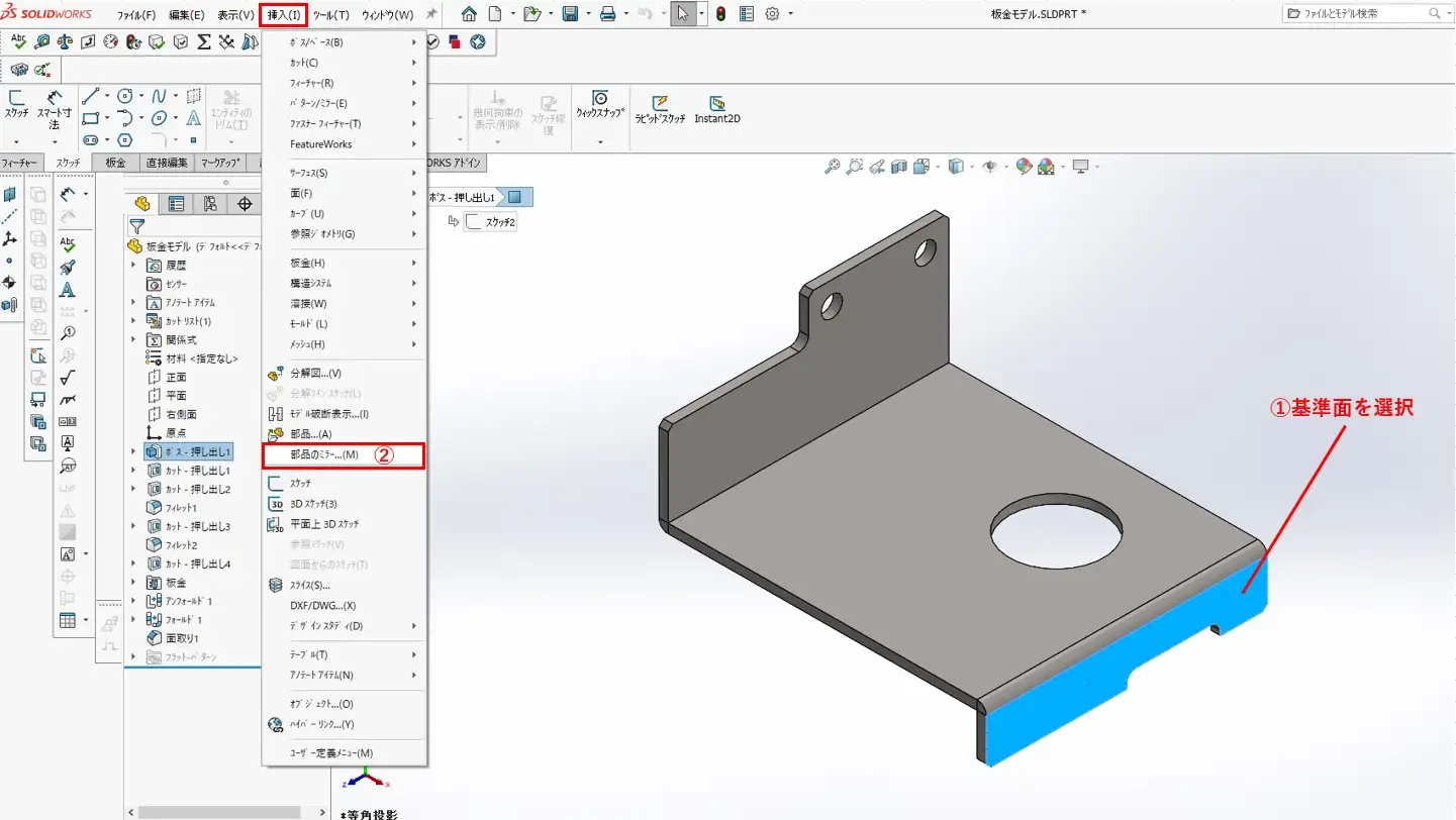 ※基準面が選択されていないと部品のミラーは選択出来ません。