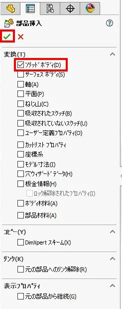 先程の設定画面内にある「元の部品へのリンク解除」にチェックを入れてください。