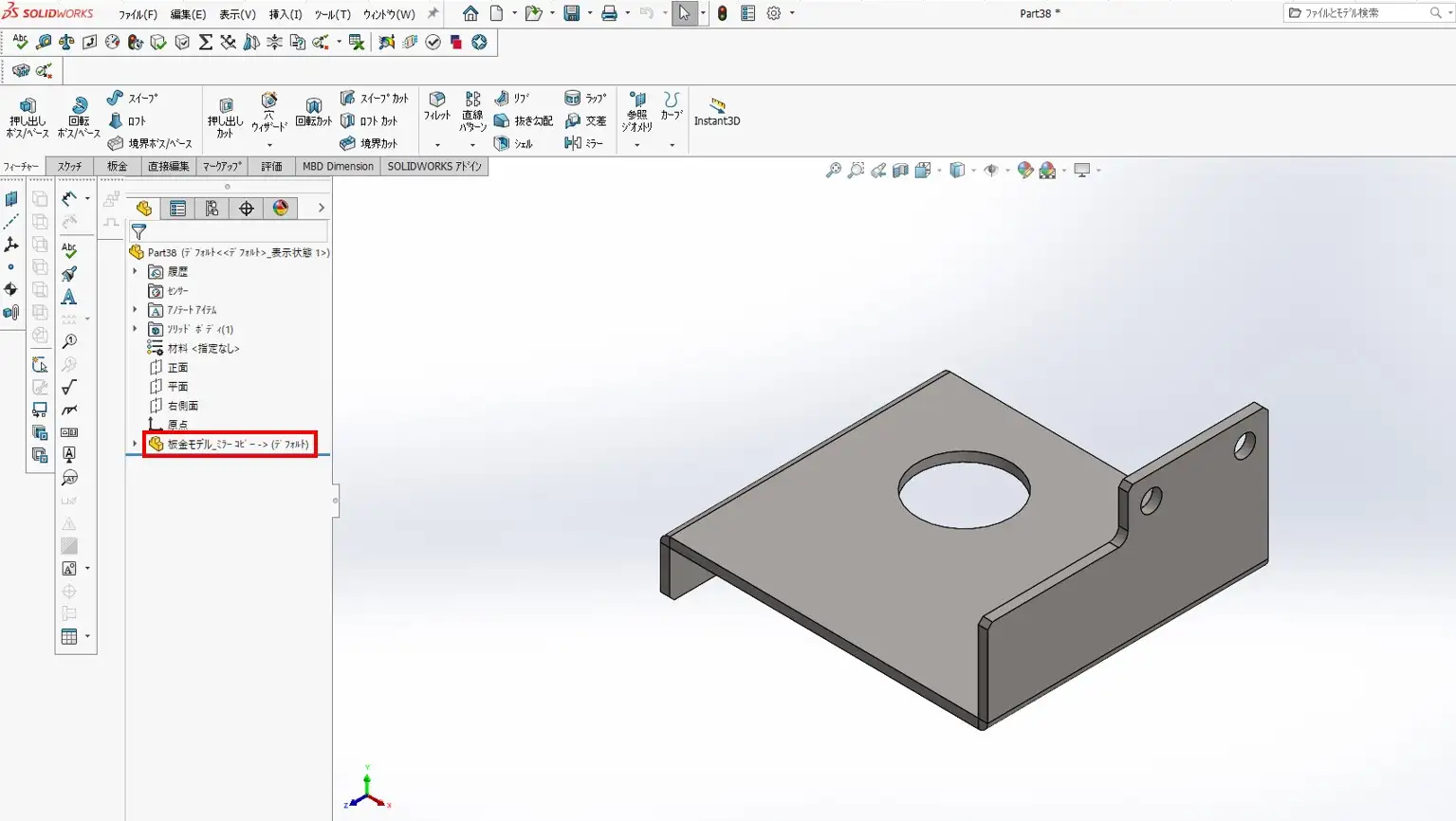 元形状を変更すると部品のミラーで作成した部品も変更されます。