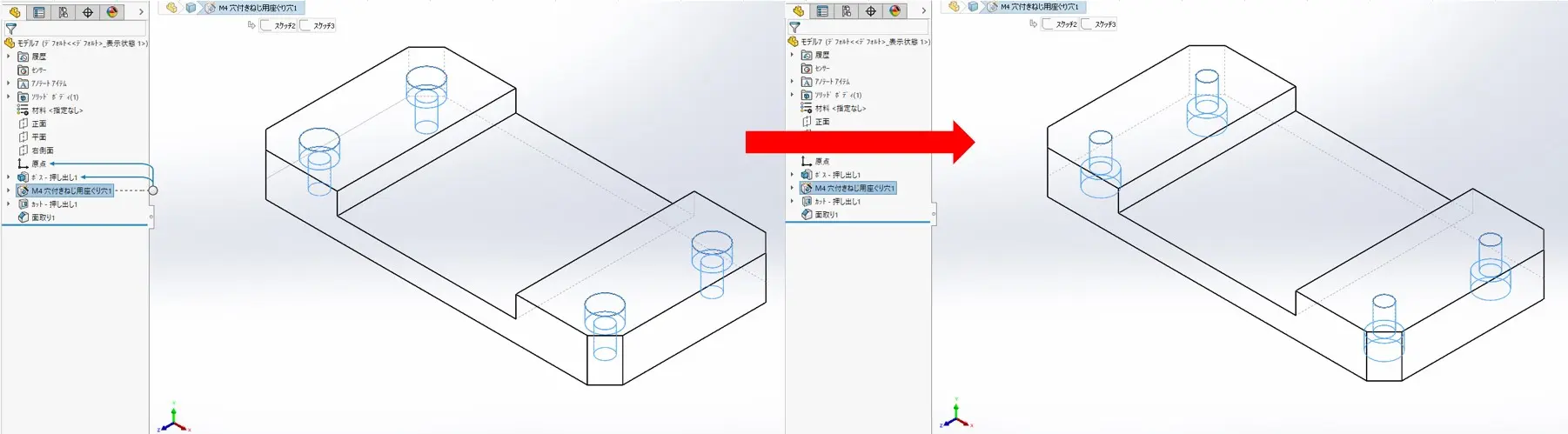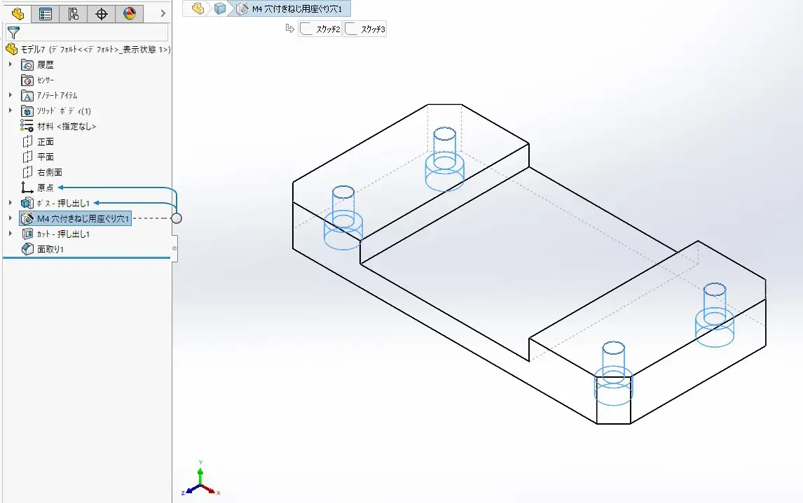 M4穴付きねじ用座ぐり穴の座ぐり向きをスケッチ平面編集を使い変更します。