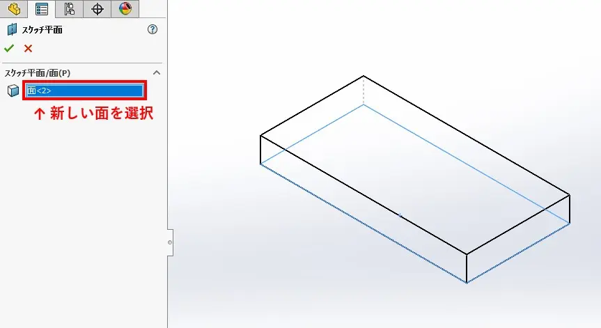 新しくスケッチ面にしたい面をモデル上で選択します。